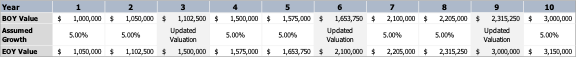 The first step is to set the value of the business with a formal valuation. This is followed by implementing the funding with life insurance. In each subsequent year, the business owners execute the increase option, including a renewed formal valuation every third year. See Table 1, below, for a description of how this could play out.