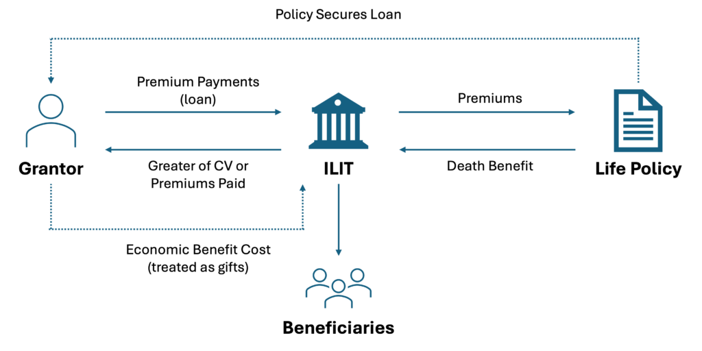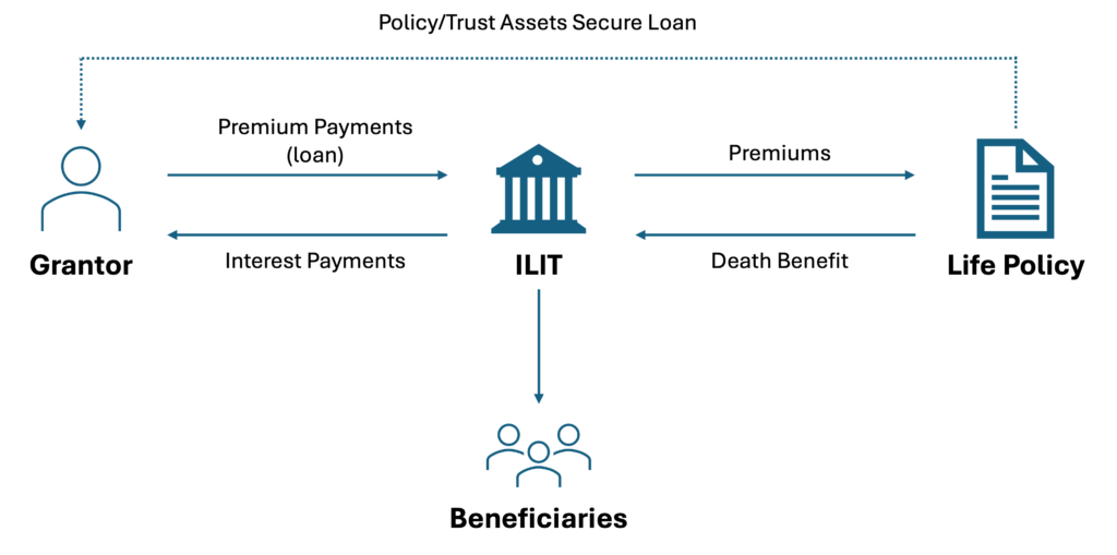 - The Grantor enters into a loan agreement with the trust, lending the trust the funds needed to pay premiums. This is often a lump sum.